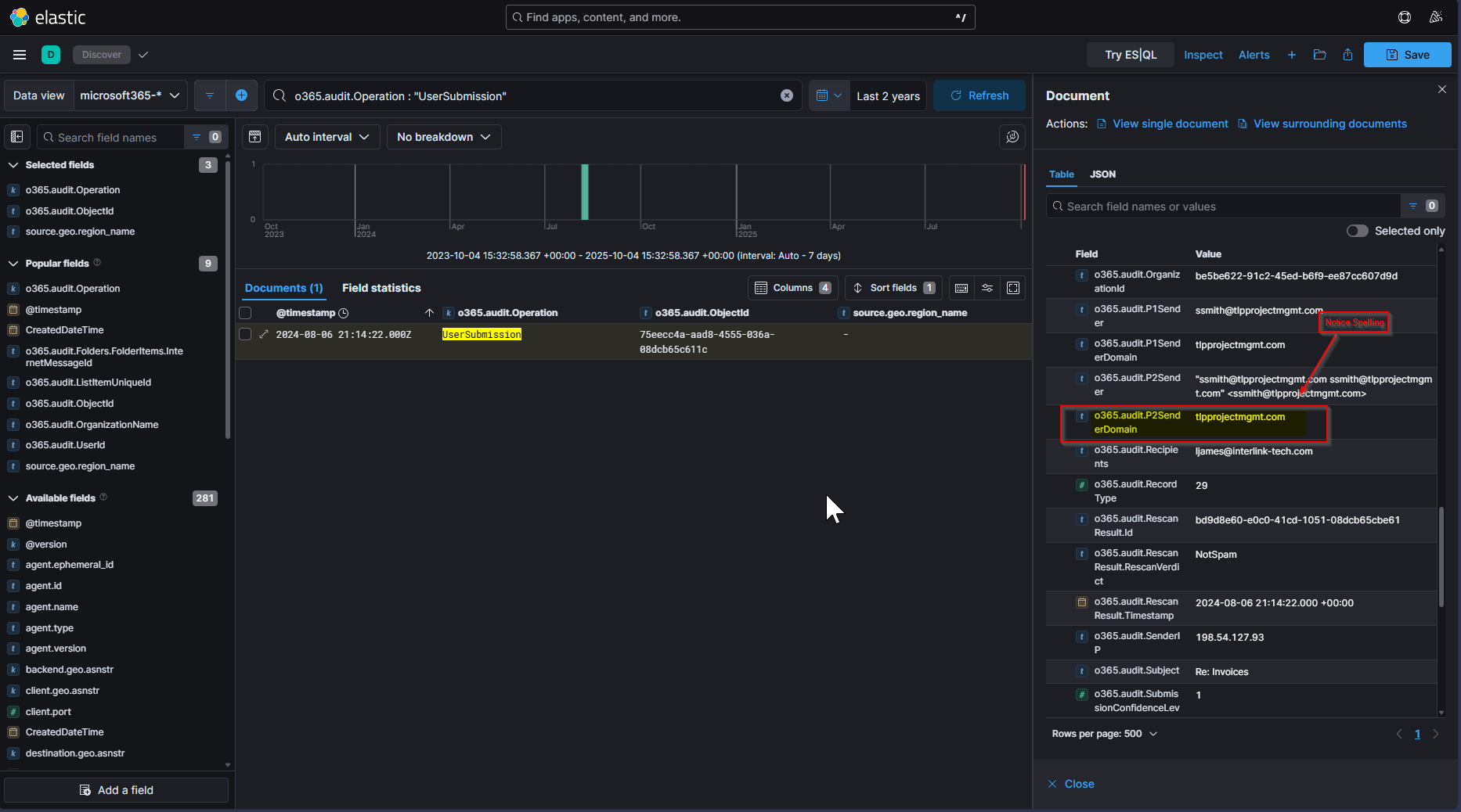 o365.audit.Operation : "UserSubmission"