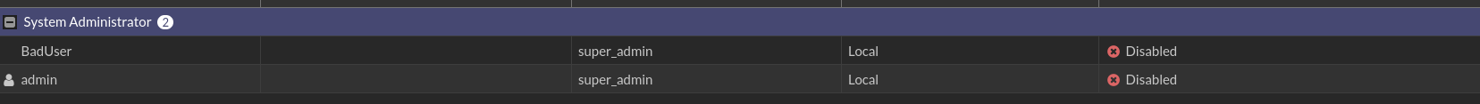 Notice the addition of the “BadUser” account as a super_admin from from the “watchTowr” user. This is obviously not great, as we are now seeing Threat Actors give themselves access to log in to the firewall and make whatever changes they see fit.