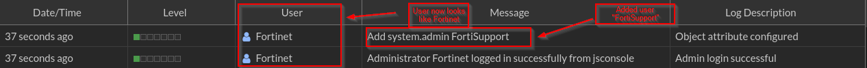To the untrained user, this might seem like acceptable behavior, as it now looks like Fortinet themselves are adding a user, FortiSupport, as a super_admin. The results are the same. The threat actors are then using the account to log in and continue escalating their access.